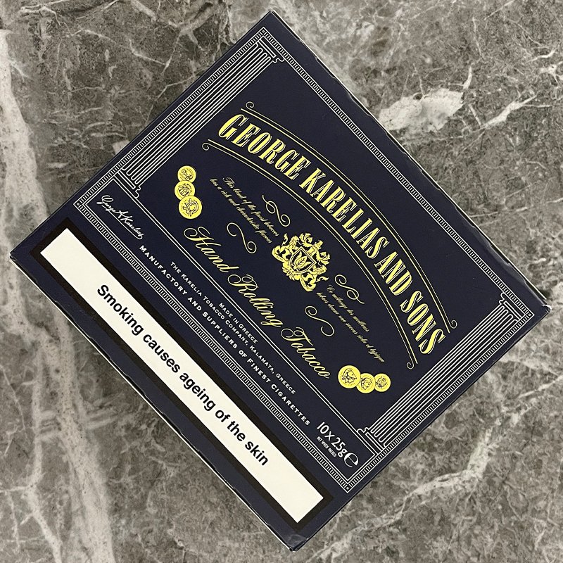 George Karelias Mavi Tütün, yüksek kaliteli tütün yapraklarının özenle seçilip işlenmesiyle üretilen, yumuşak içimi ve yoğun aromasıyla bilinen bir üründür. Bu tütün, Virginia ve Burley türlerinin karışımından elde edilmiştir, bu da ona hem güçlü hem de dengeli bir lezzet sunar.